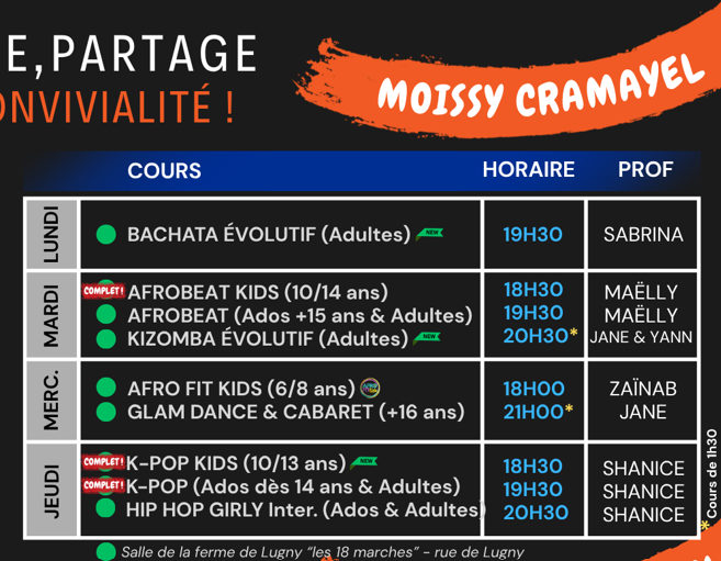 Planning des cours 2025/2026 - MOISSY CRAMAYEL